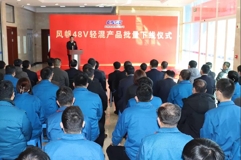 2021年12月18日上午,中國(guó)船舶集團(tuán)旗下中國(guó)動(dòng)力子公司風(fēng)帆公司在產(chǎn)業(yè)園區(qū)舉行48V輕混產(chǎn)品批量下線儀式。