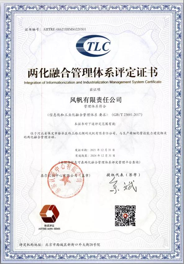 通過兩化融合管理體系認證,標志著風帆公司在推進工業(yè)化和信息化融合方面取得了新突破,在持續(xù)優(yōu)化管理,深入貫徹融合和創(chuàng)新理念的過程中,風帆公司力爭保持可持續(xù)競爭優(yōu)勢,強化信息化環(huán)境下的新型能力。