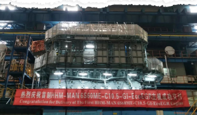 2023年2月25日,中國動力子公司中船動力集團下屬滬東重機有限公司鎮(zhèn)江生產(chǎn)基地首臺6S60ME-C10.5-GI-EcoEGR正式提交。