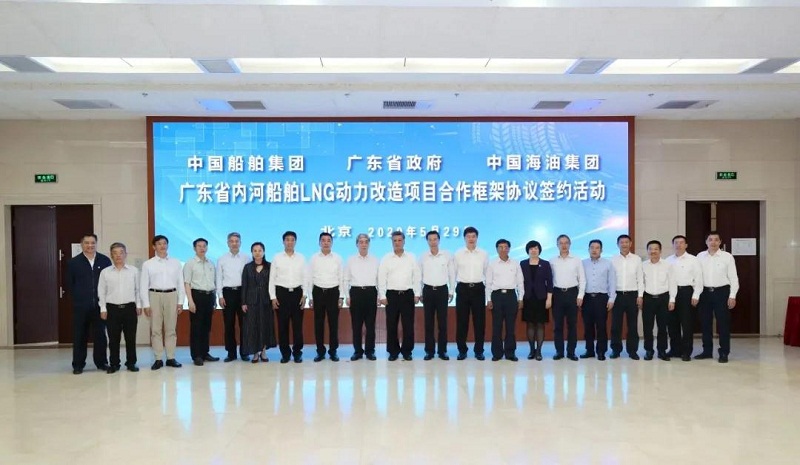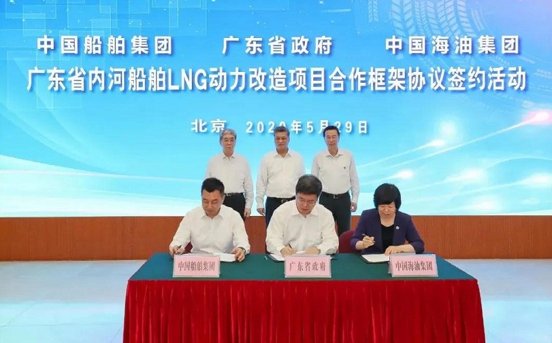 ????5月29日,中國船舶集團(tuán)有限公司與廣東省人民政府、中國海洋石油有限公司在京簽署《廣東省內(nèi)河船舶LNG動(dòng)力改造項(xiàng)目合作框架協(xié)議》。廣東省委副書記、省長馬興瑞,中國船舶集團(tuán)黨組書記、董事長雷凡培,中國海油黨組書記、董事長汪東進(jìn),中國船舶集團(tuán)黨組成員、副總經(jīng)理杜剛,中國海油黨組成員、副總經(jīng)理陳壁出席簽約儀式。廣東省副省長覃偉中,中國船舶集團(tuán)黨組成員、副總經(jīng)理孫偉,中國海油黨組成員、總會(huì)計(jì)師溫冬芬分別代表各方在協(xié)議上簽字。