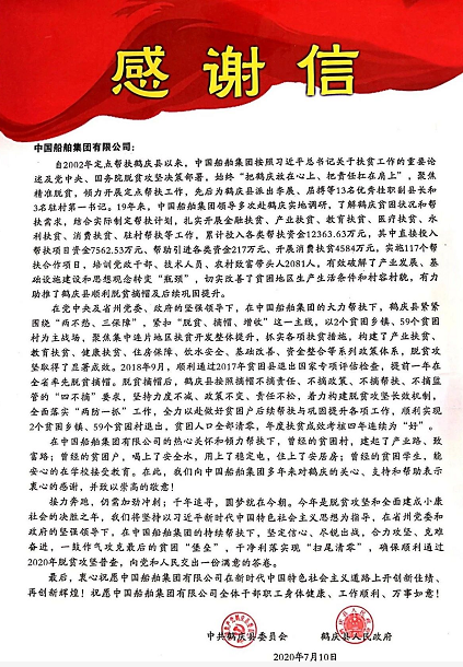 近日,中國船舶集團收到了一封來自云南鶴慶的感謝信。從初識到現在,我們已在脫貧攻堅的戰場上,攜手奮戰19載,如今正一鼓作氣攻克最后的貧困“堡壘”。