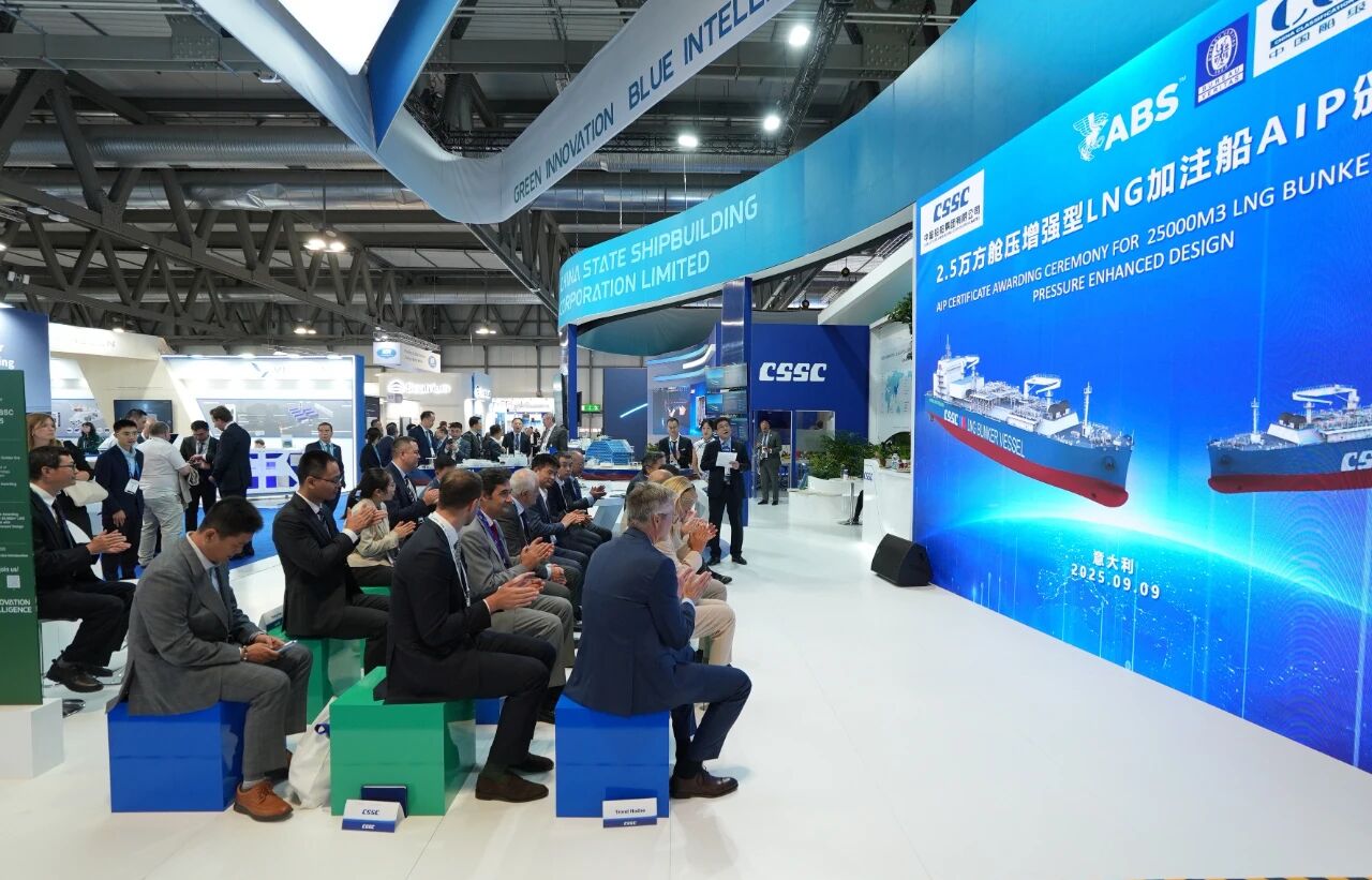 開展當天,中船集團舉辦江南造船五項革新船舶解決方案的AiP頒證儀式、滬東中華2.5萬立方米艙壓增強型LNG加注船AiP頒證儀式等專題活動,吸引了眾多國際船東、船級社、設備廠商等到場觀摩,與參展二級管理單位交流市場最新熱點并探討未來合作機遇。展會期間,中船集團還將組織舉辦 “全球服務網絡”說明推介會等多場市場開發專題活動,精準高效開展技術產品服務推介和品牌海外推廣。